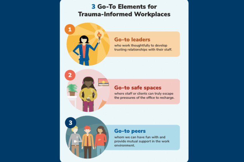 This infographic presents three ways organizations can use to create a trauma-informed environment at work.